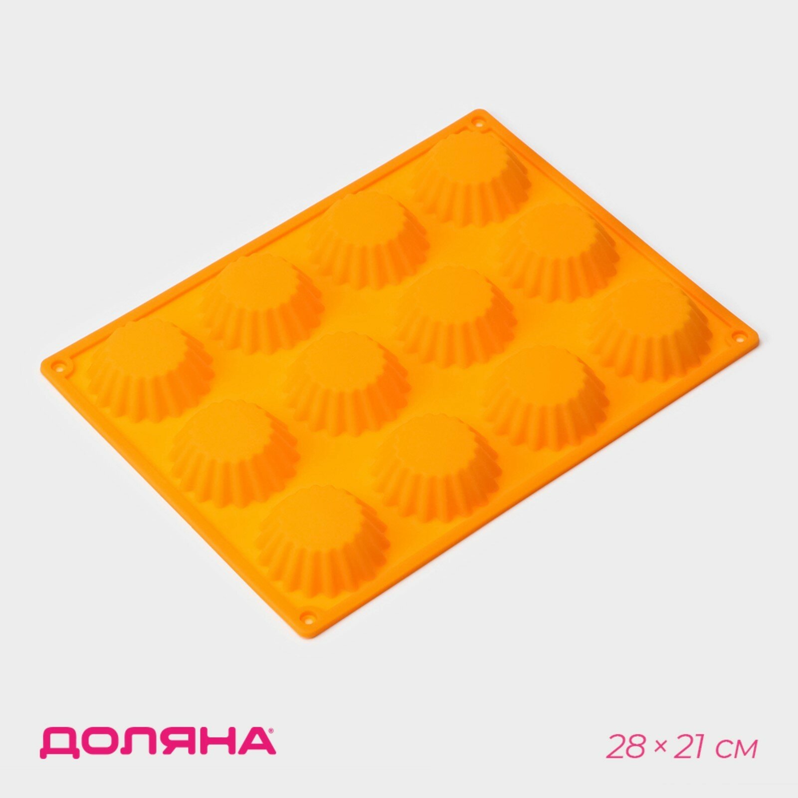 Купить Форма силиконовая для выпечки Доляна «Круг», 28×21 см, 12 ячеек, d=5,9 см, d по дну = 4 см, цвет микс