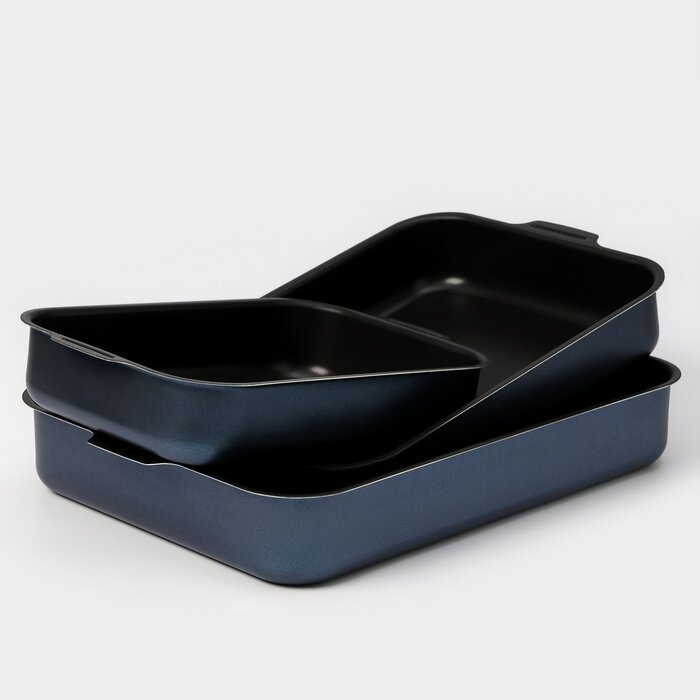 Набор противней "Лазоньера", 3 предмета: 19x25 см, 23x30 см, 27x35 см, h=7 см, антипригарное покрытие, цвет синий