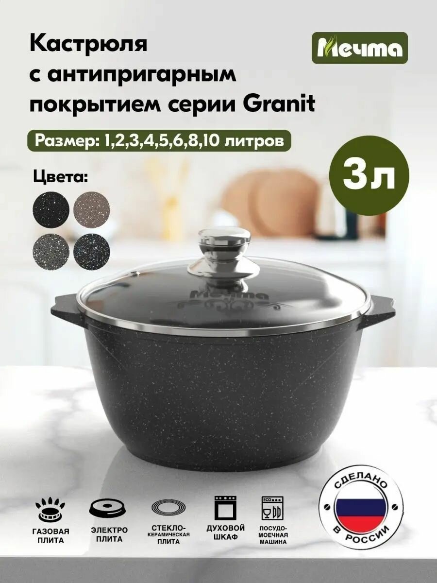 Мечта Кастрюля 6л АП Гранит black 46802 черная, антипригарное покрытие