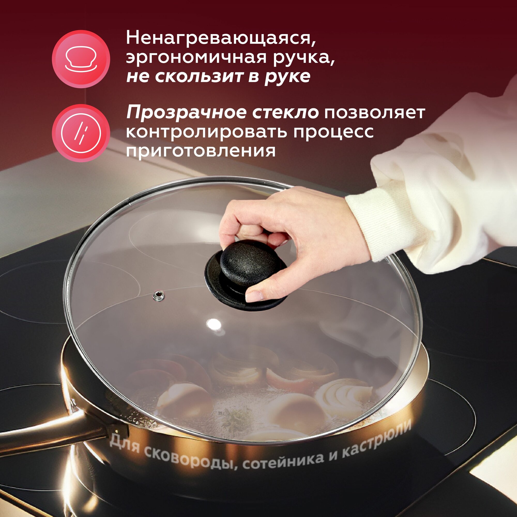 Крышка для сковороды 24 см, стеклянная крышка для кастрюли 24 см, ненагревающаяся ручка, Hitt