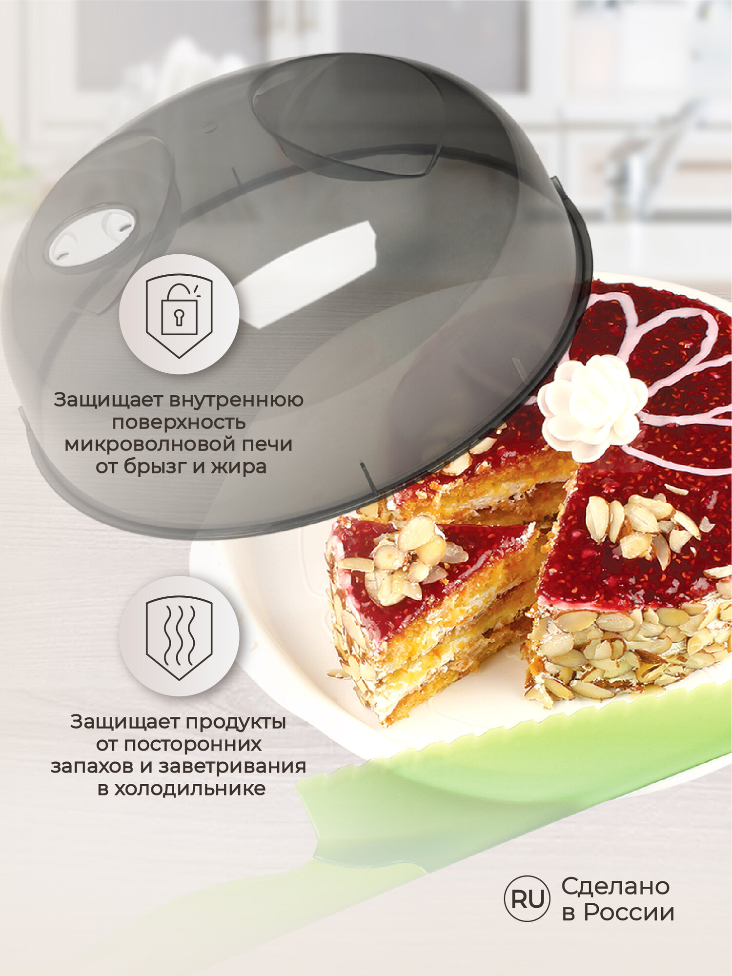 Крышка для микроволновой печи диаметр 23 cм, (серый), Phibo