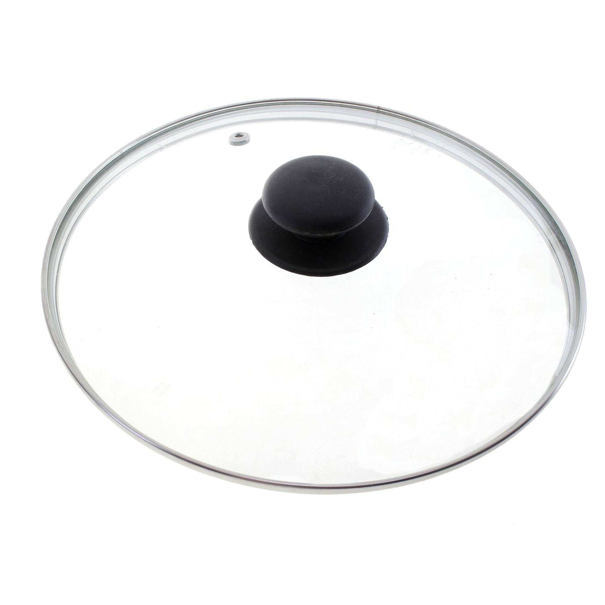 Крышка с ручкой стеклянная диаметр 14см с металлическим ободком и паровыпуском, высота 5,4см