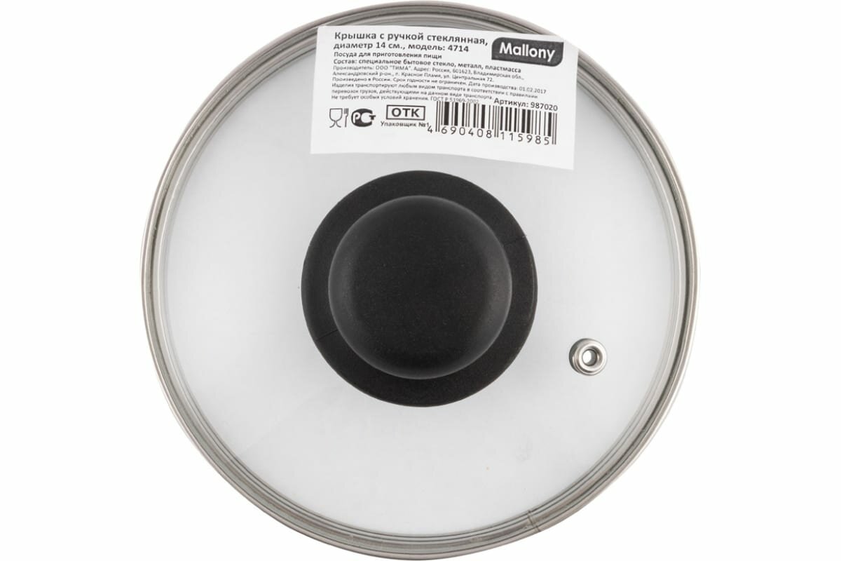 Крышка с ручкой стеклянная 14см., с метал обод, паровыпуск, низ. (987020) интересное: