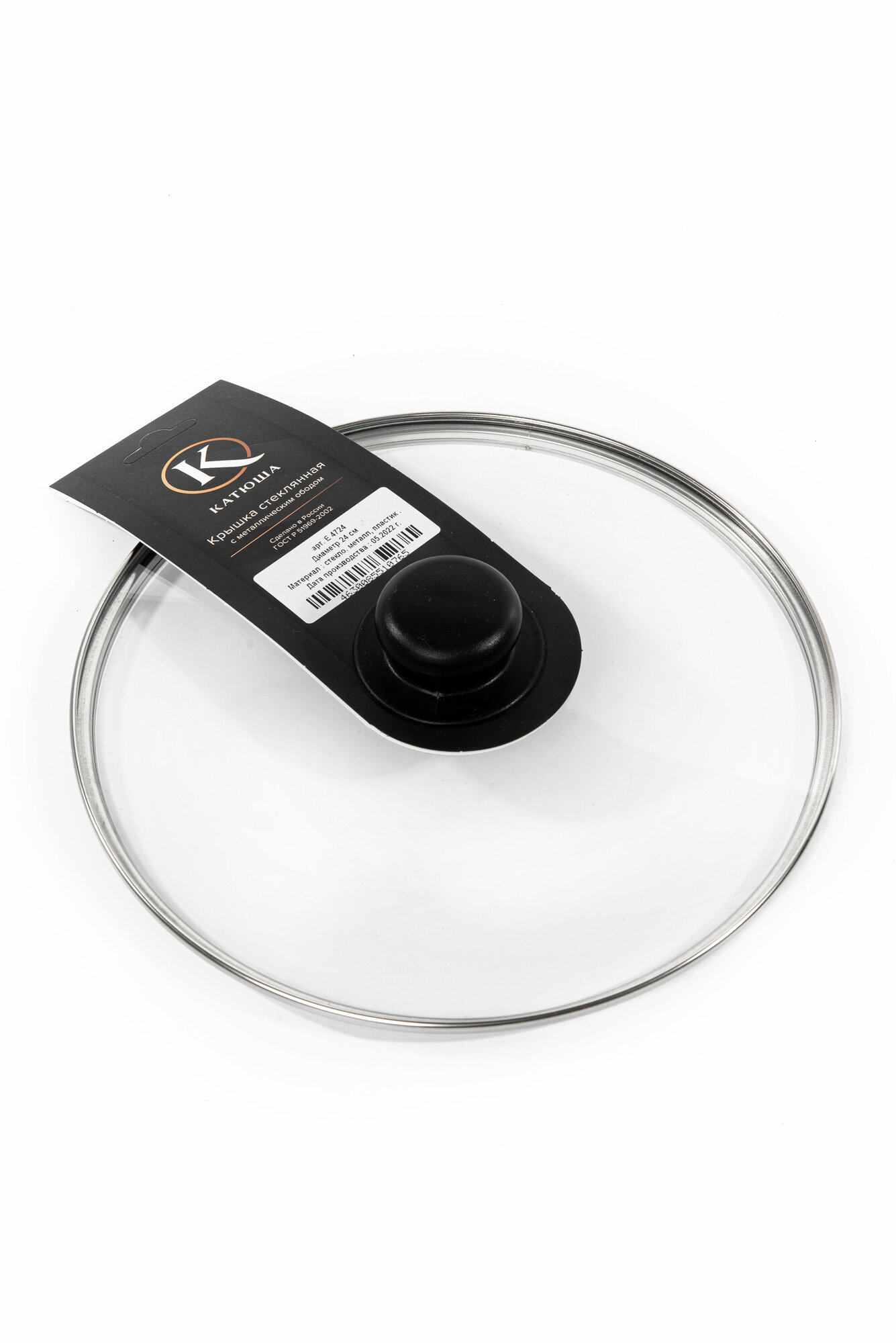 Крышка стеклянная с пароотводом, пластиковая ручка, 24 см, Катюша