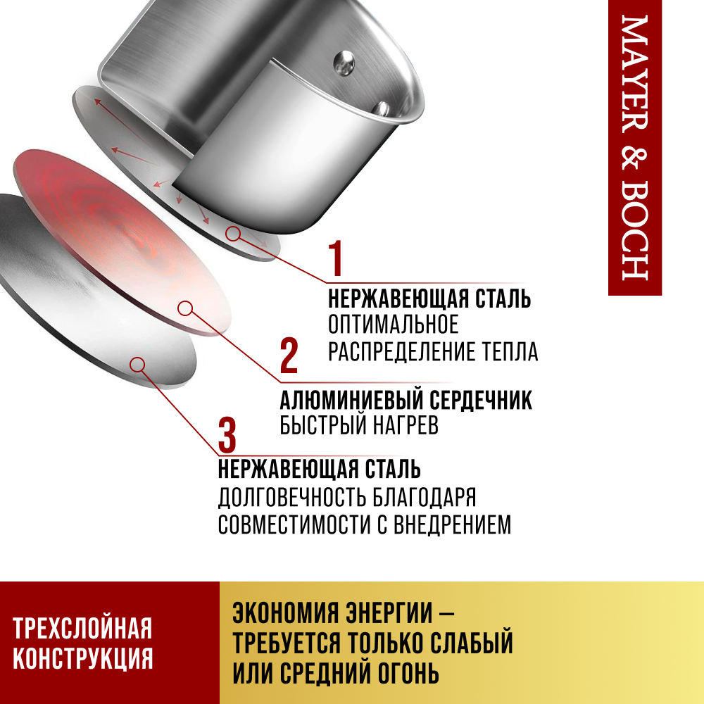 СохранитьНабор кастрюль из нержавеющей стали с крышками MAYER&BOCH 30993 интересное: