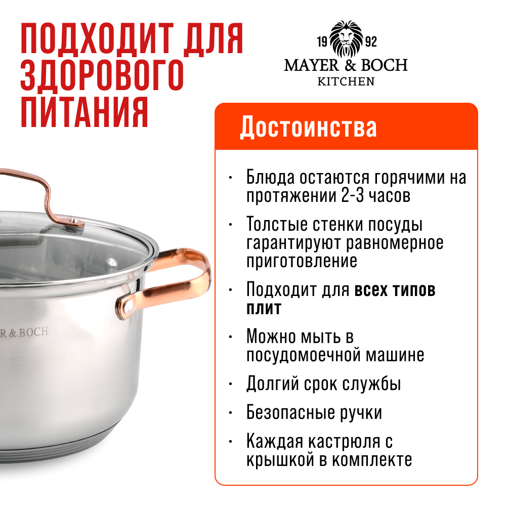 Набор кастрюль MAYER&BOCH из нержавеющей стали с крышками