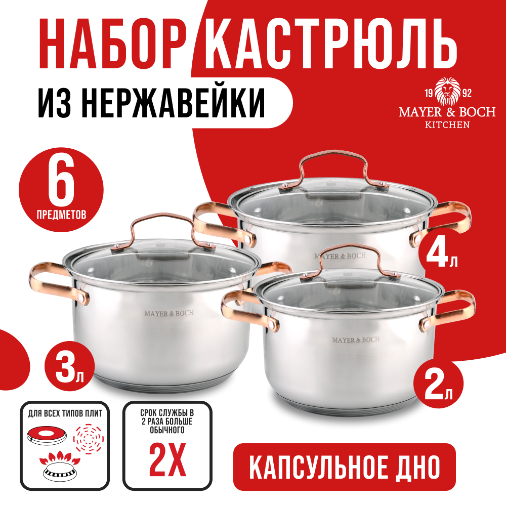 Набор посуды Mayer&Boch 31003 6 предметов 2,3+3,8+5,0 л (х1)