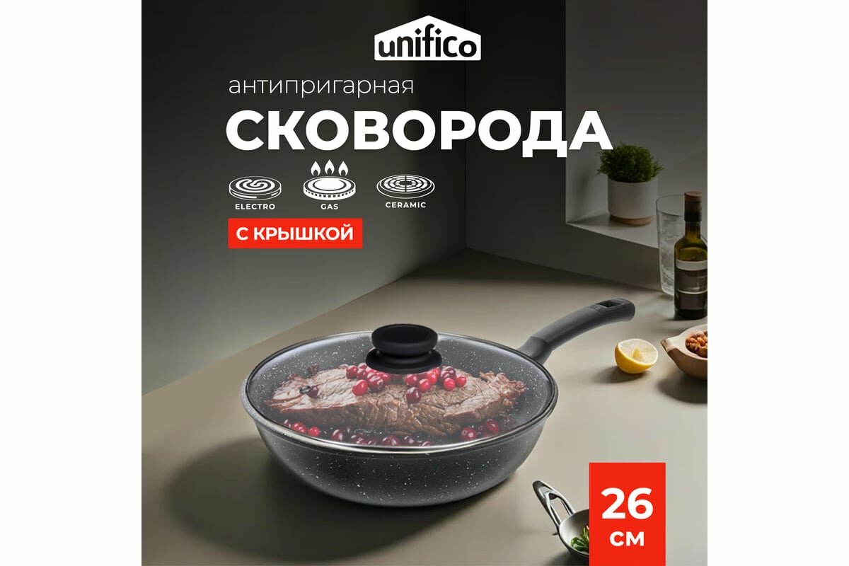 СохранитьUnifico Сковорода литая с крышкой My day Grande 26см 10000008340 интересное: