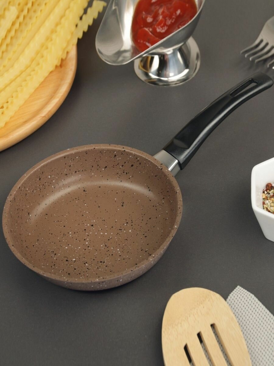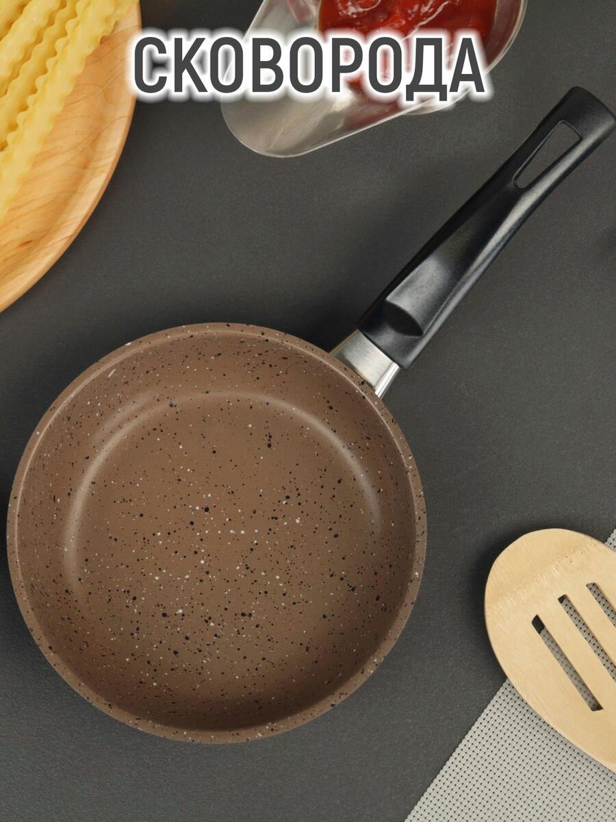 Сковорода Доляна Rock, d=15 см, пластиковая ручка, антипригарное покрытие, цвет коричневый
