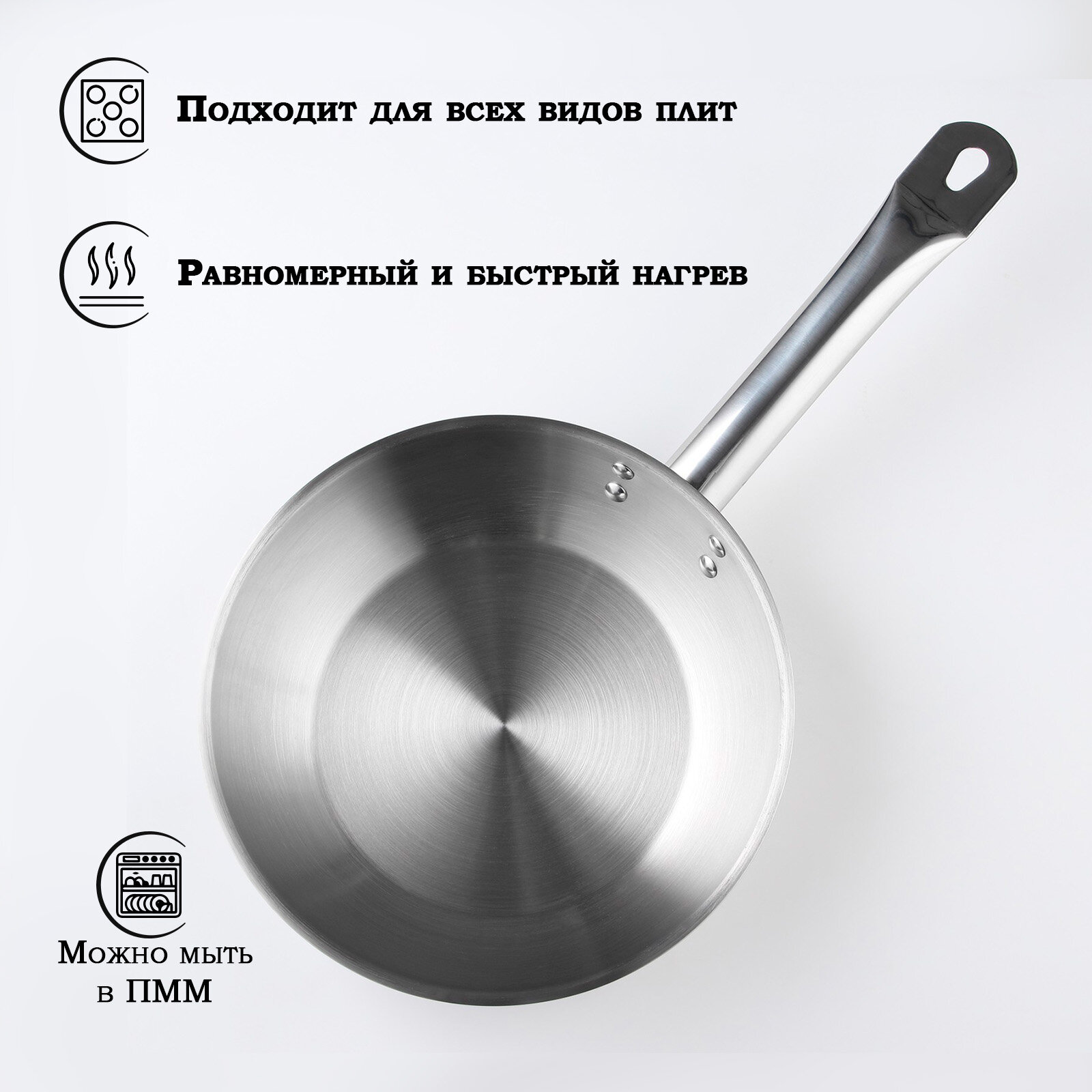 Сковорода 26см профессиональная, индукция, нержавеющая сталь