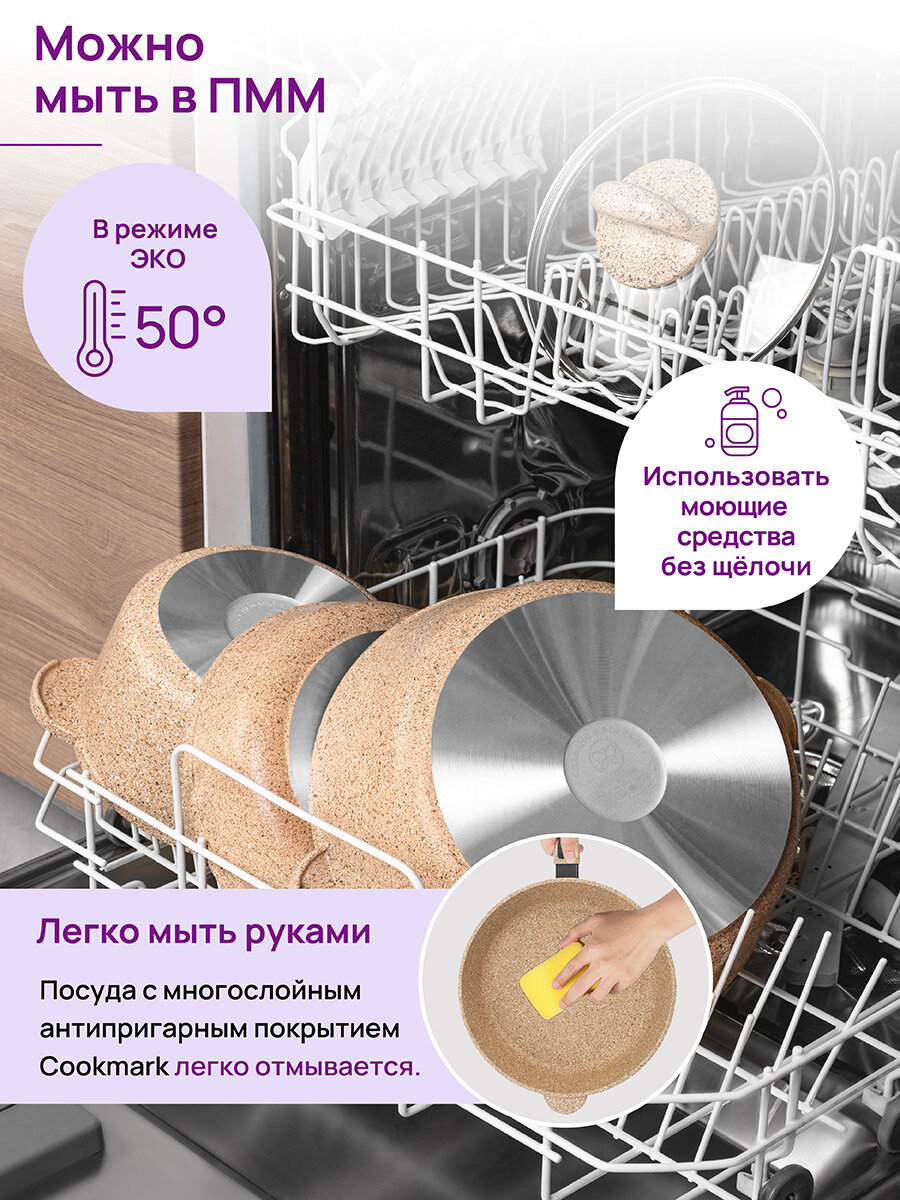 | Особенности | использование в духовке / мытье в посудомоечной машине / с крышкой / съемная ручка |