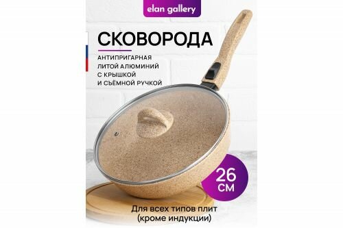 Сковорода глубокая 26 см Elan Gallery гармония вкуса Медовый гранит с крышкой D26, со съёмной ручкой