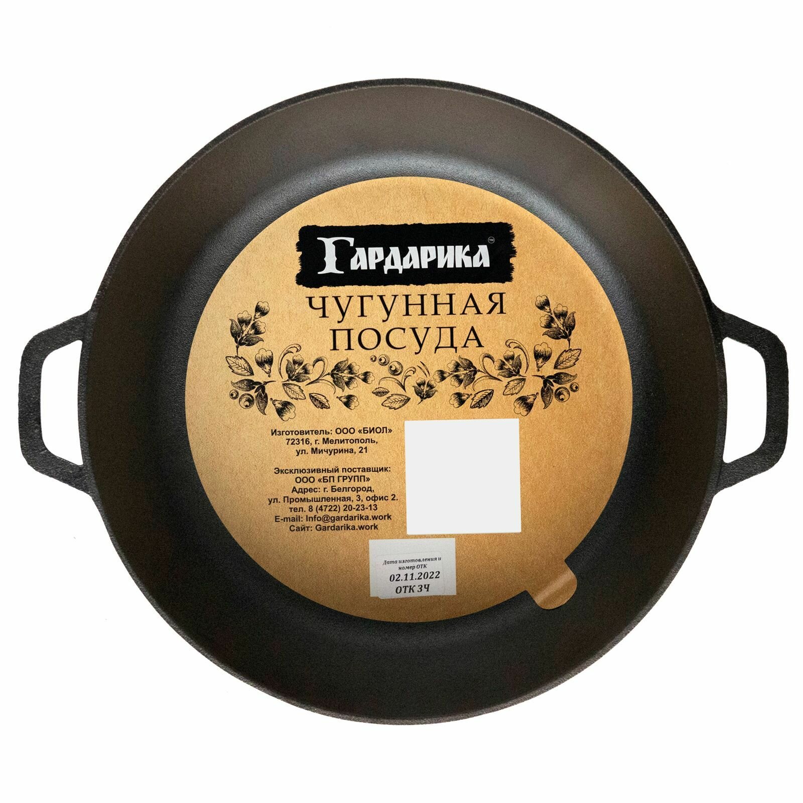 Сковорода Вок чугунная 28 см с двумя ручками Гардарика