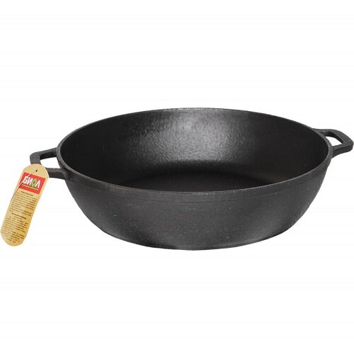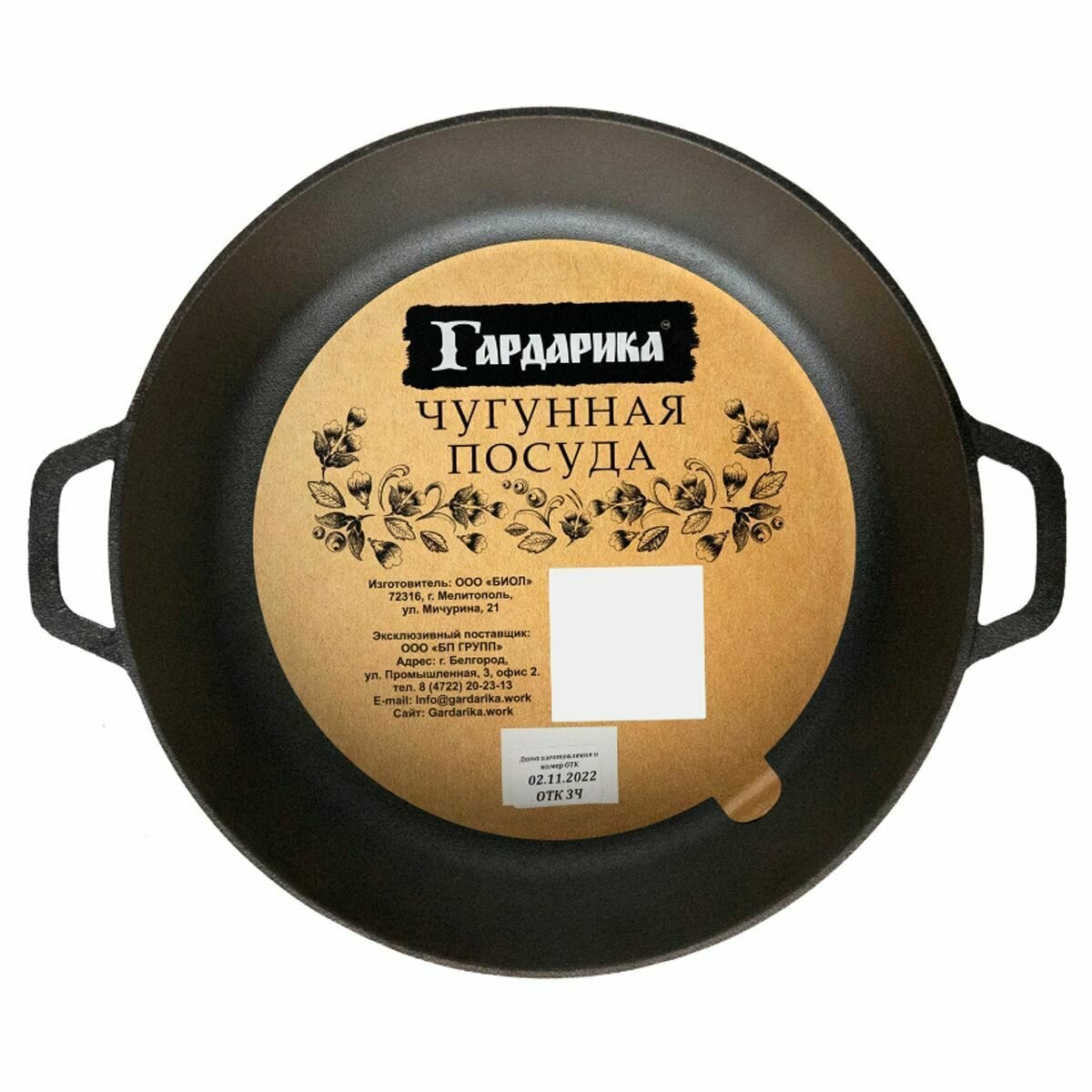 Сковорода Вок чугунная 28 см с двумя ручками Гардарика