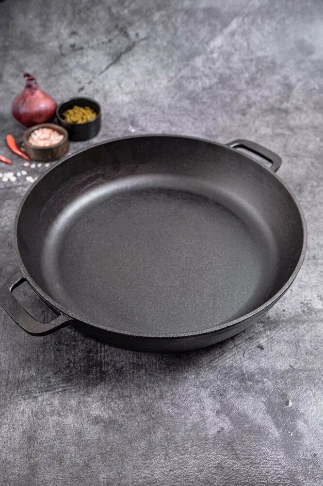Сковорода Вок чугунная 28 см с двумя ручками Гардарика