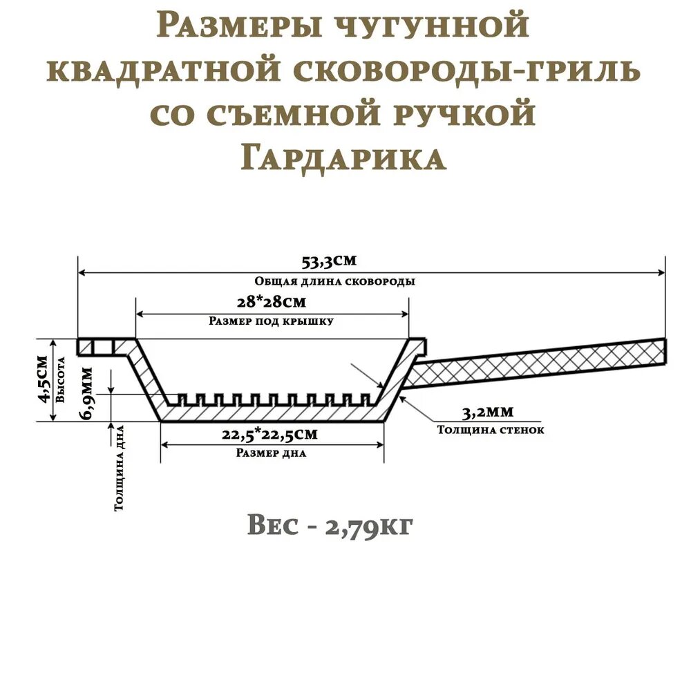 СохранитьСковорода-гриль чугунная 28 см, с двумя сливами и со съемной ручкой Гардарика интересное: