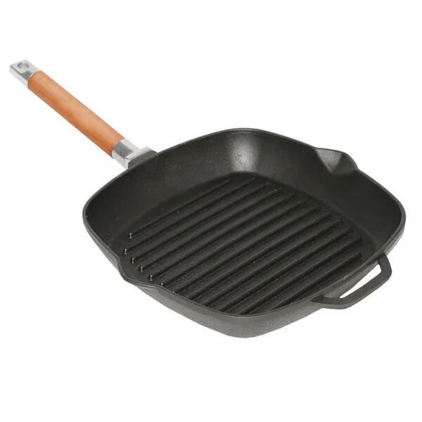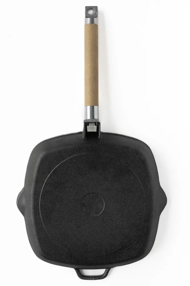 Сковорода-гриль чугунная 26 см, с двумя сливами и со съемной ручкой Гардарика