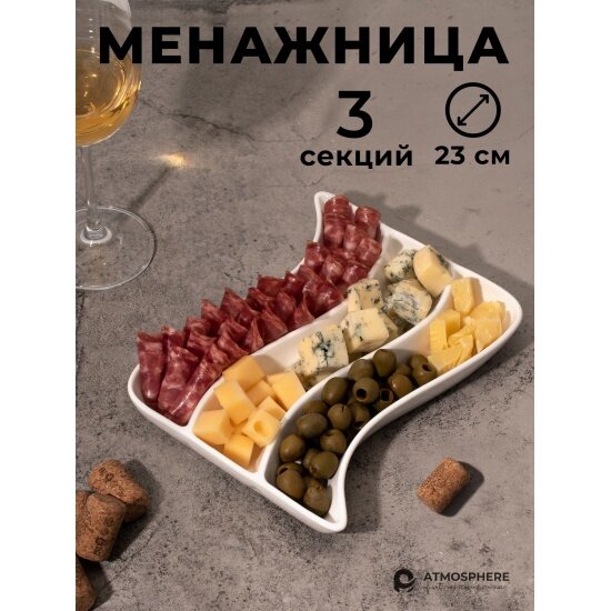 Менажница керамическая белая, 3 секции, 23х17.5х3 см интересное: