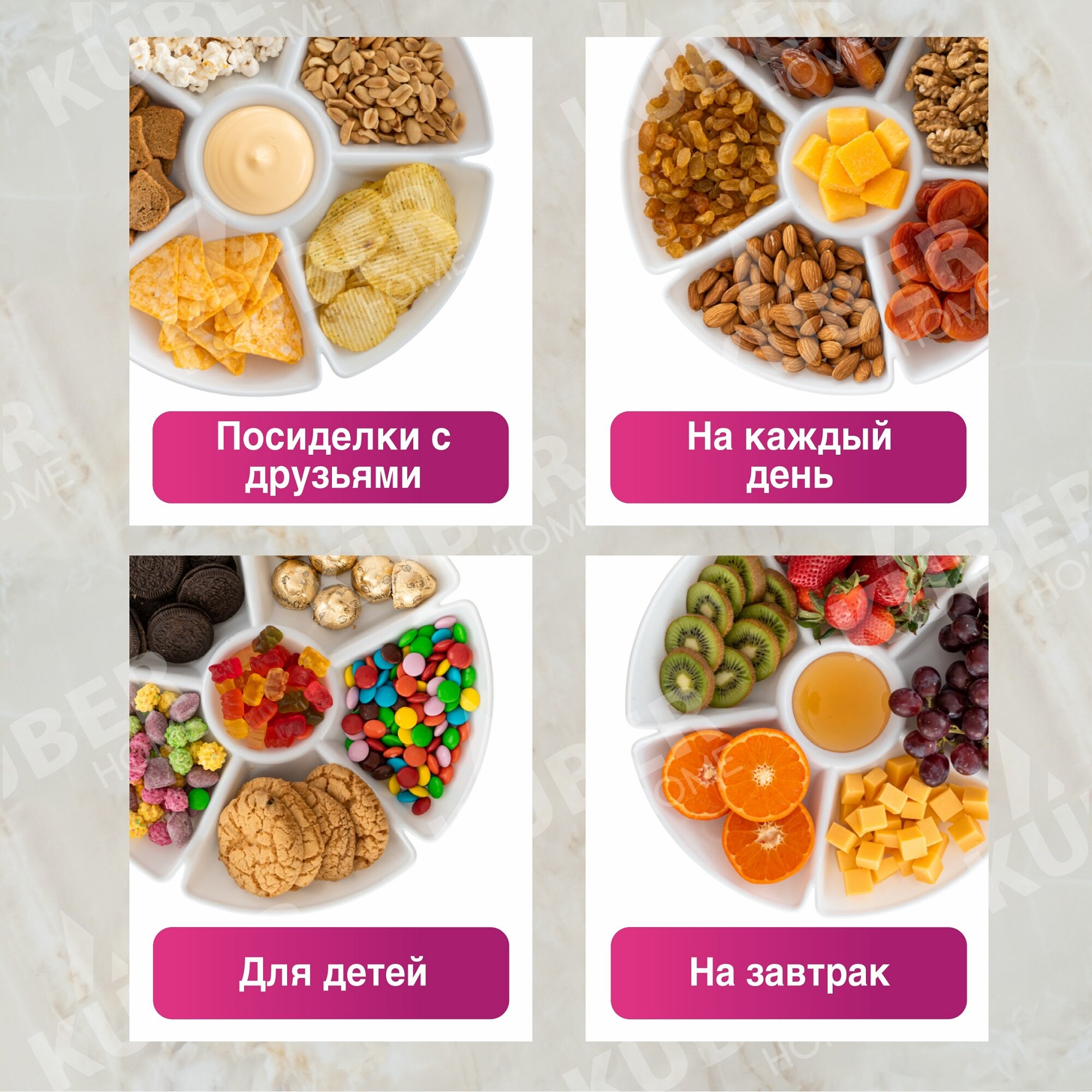 Менажница "Сияние" от Kuber Home, белая 4шт интересное: