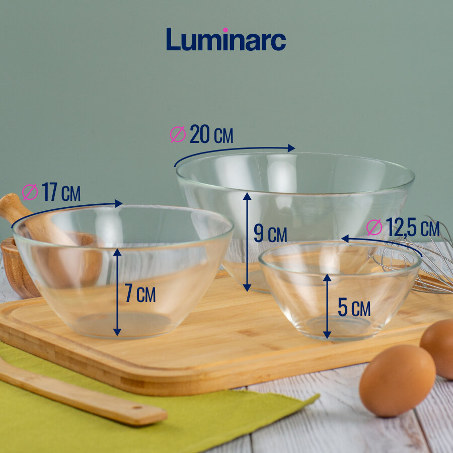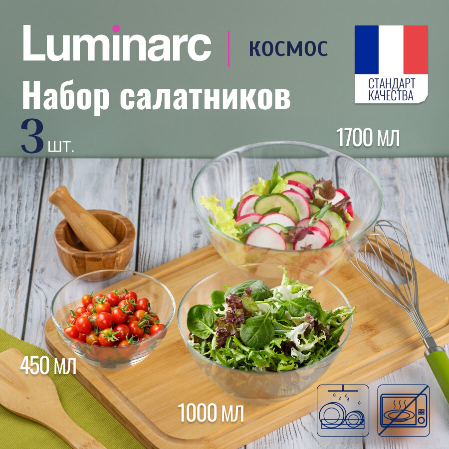 Набор салатников из 3 штук Luminarc Cosmos 12,5 см- 450 мл, 17 см - 1 л, 20 см - 1,7 л