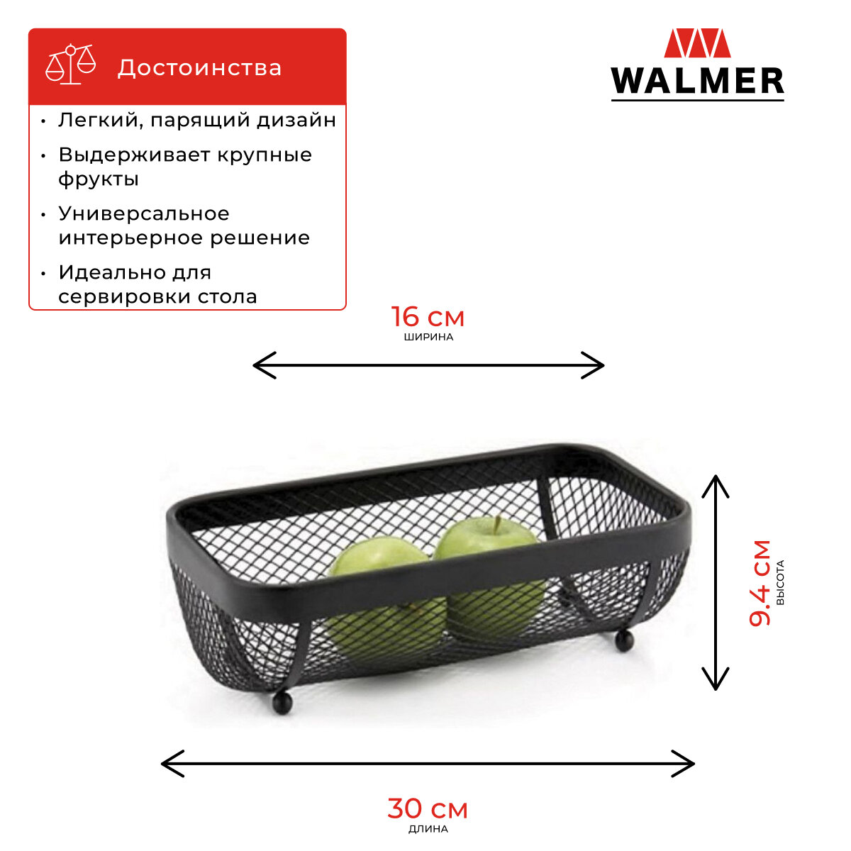 Купить Корзина Walmer для фруктов Mesh 30*16*9.4 см (W14233016)
