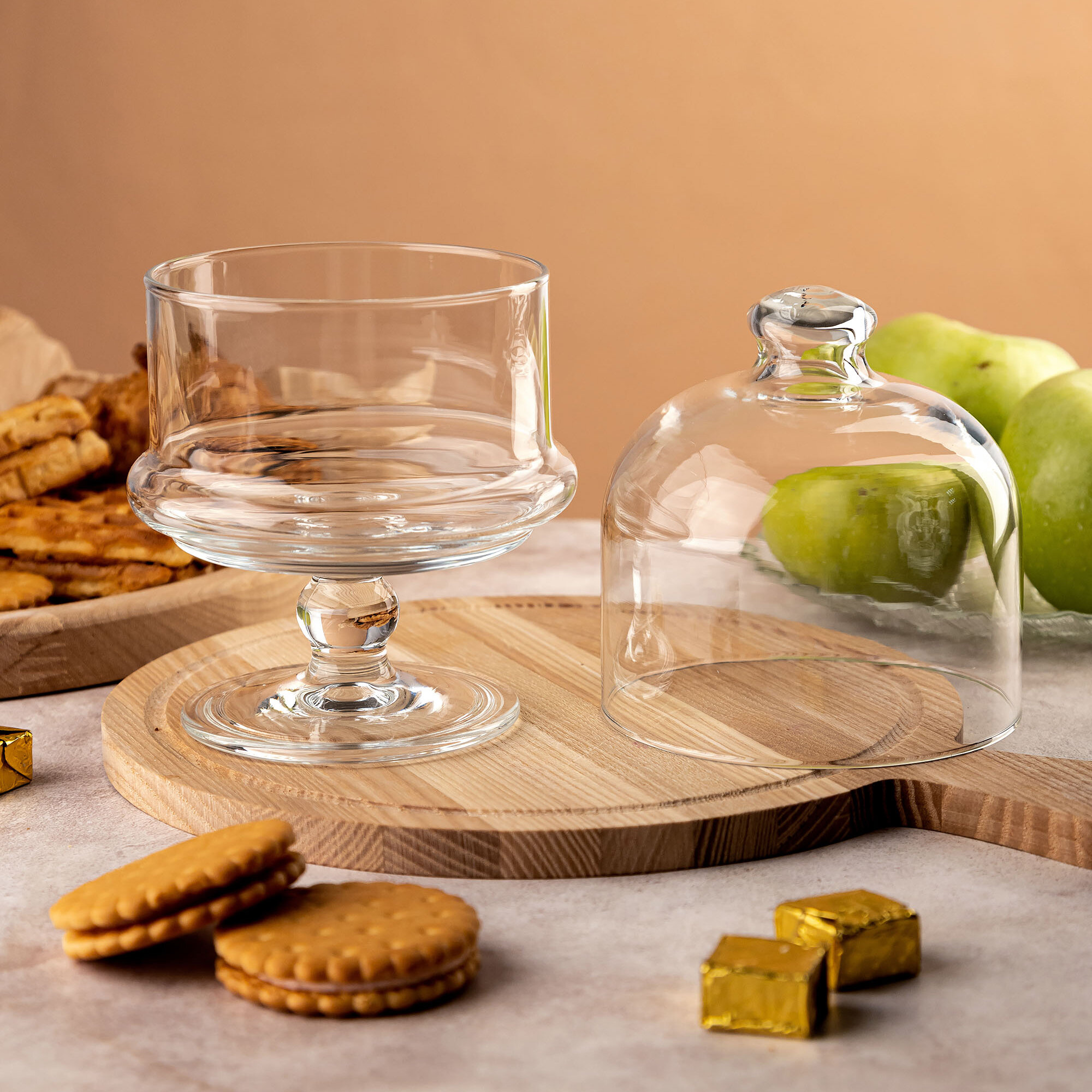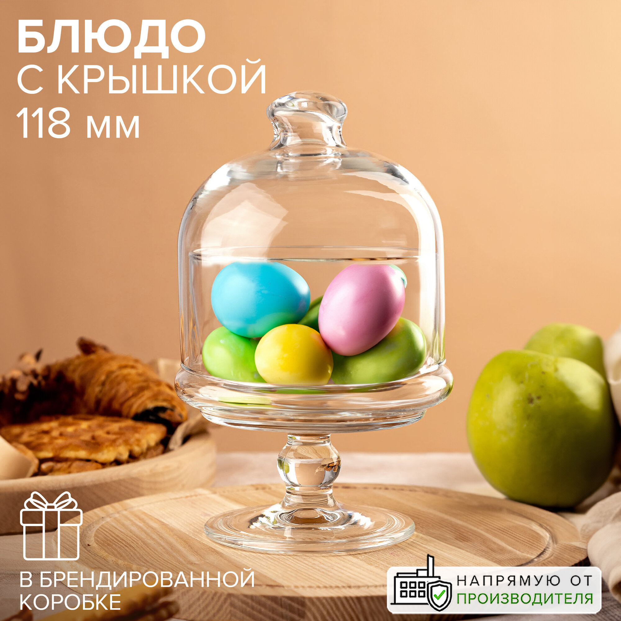 Блюдо стеклянное 11,8 см с крышкой - куполом и на ножке, Pasabahce интересное: