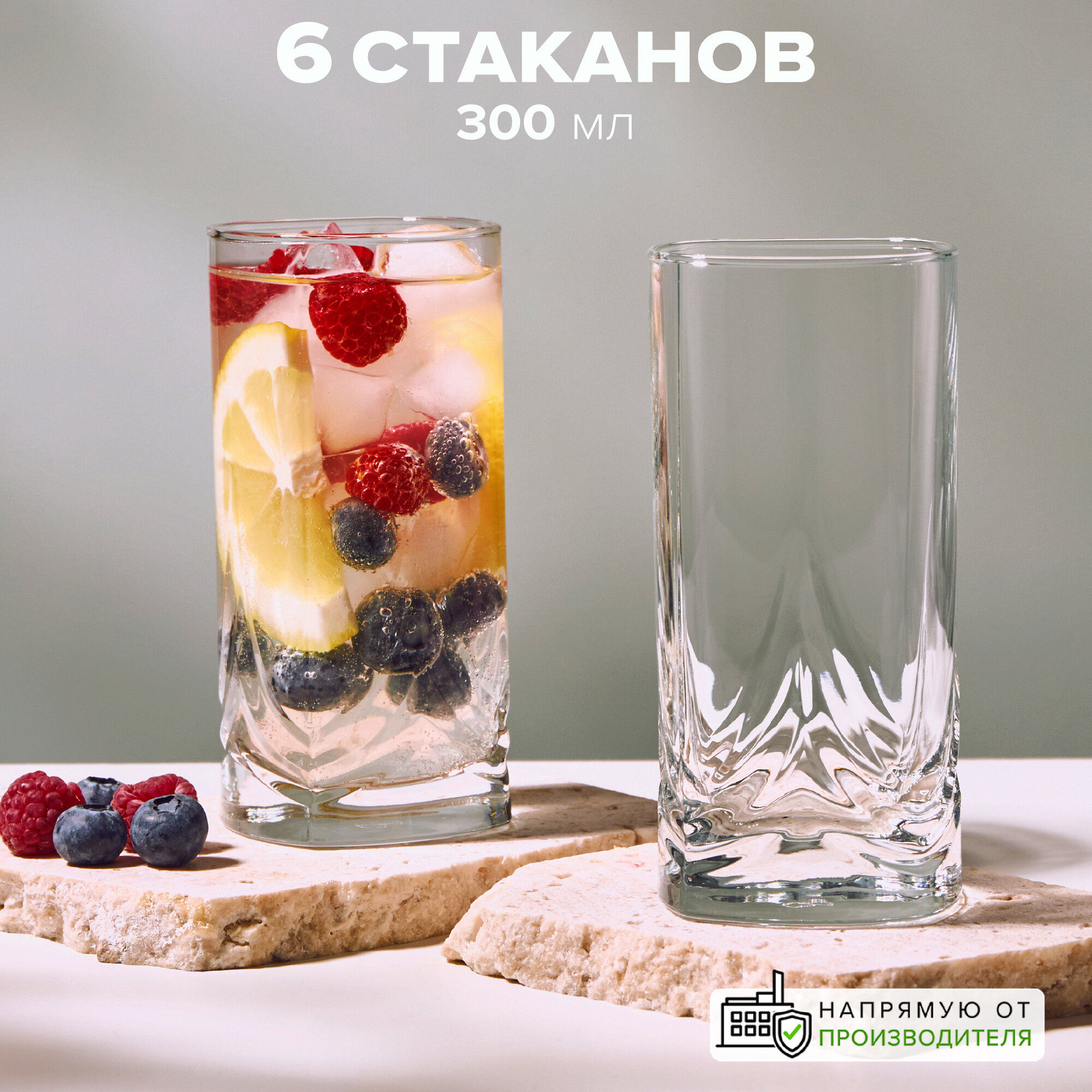 | Дополнительная информация | Стаканы высокие стеклянные бренда Pasabahce, набор 6 шт., объемом по 300 мл. |