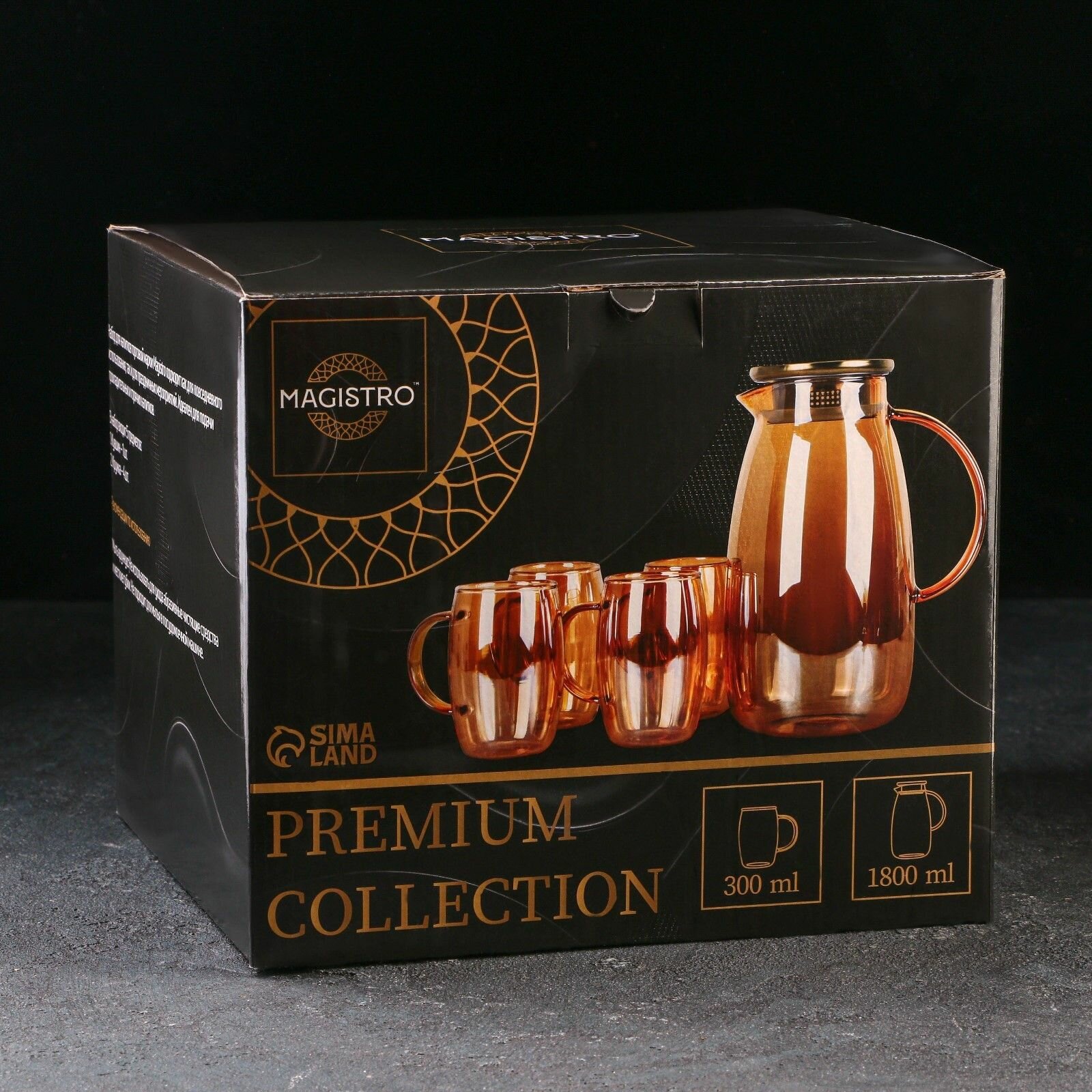 Набор для напитков из стекла Magistro «Голден», 5 предметов: кувшин 1,8 л, 4 кружки 300 мл, цвет золотой интересное: