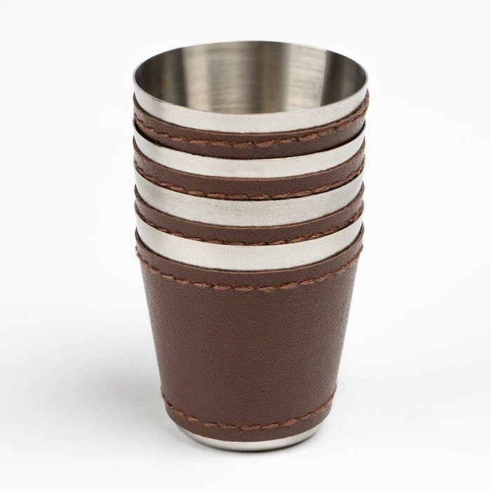 Купить Набор рюмок с отделкой из экокожи, 4 шт × 30 мл, рюмка 7 х 4 см 288436