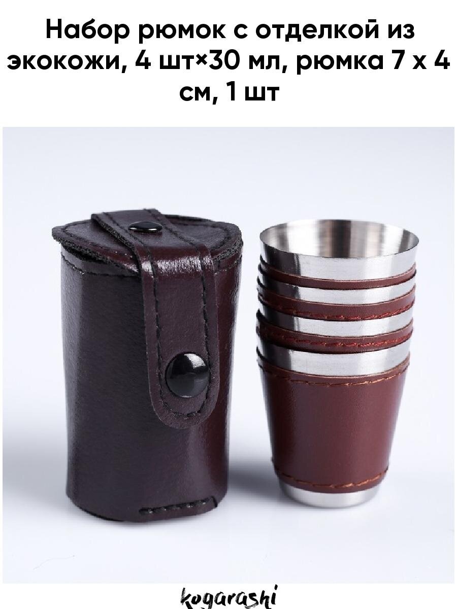 Набор рюмок с отделкой из экокожи, 4 шт × 30 мл, рюмка 7 х 4 см 288436 интересное: