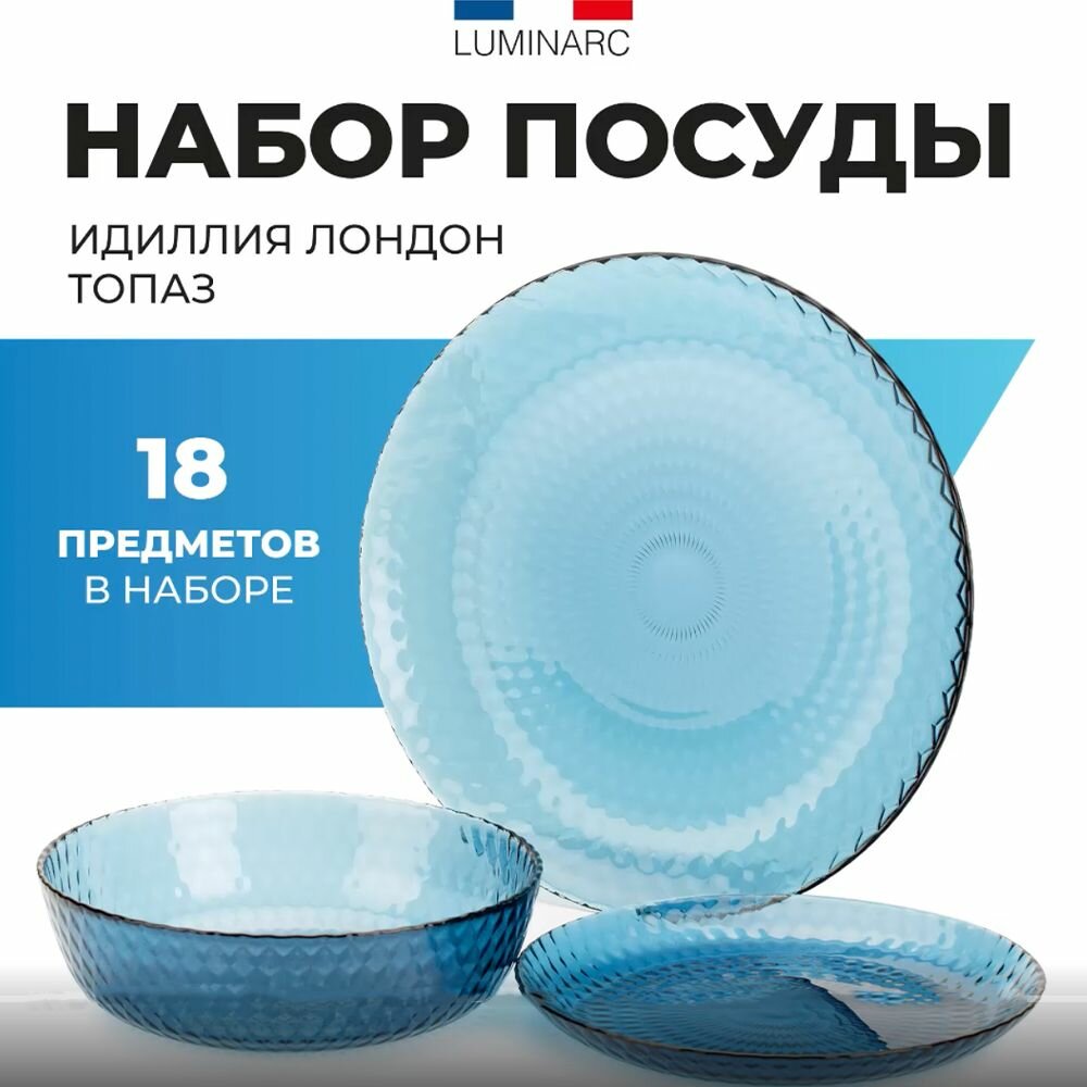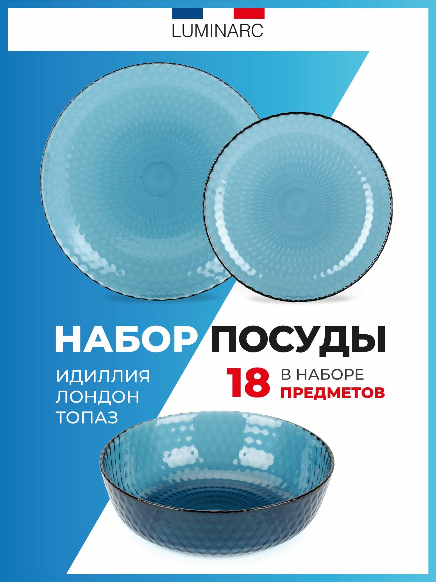 Набор столовой посуды Luminarc идиллия лондон топаз 18 предметов / посуда для сервировки стола / тарелки набор