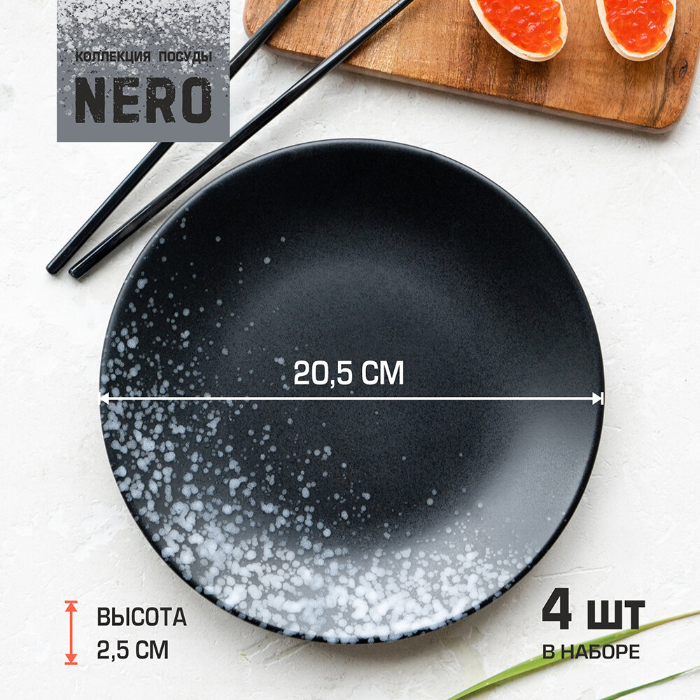 Набор тарелок 26см, 2шт Elite black тарелки круглые черные керамические тарелка для второго