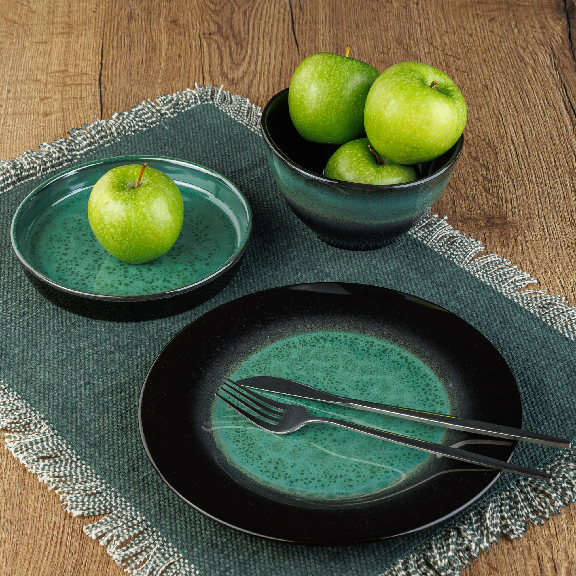 Набор тарелок темно-зеленых, 4 шт, диаметр 24 см, керамика, коллекция "Верде-Ноте"