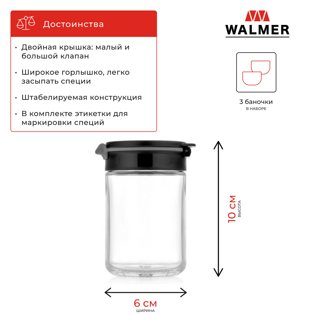 Набор банок WALMER Dual 3шт. 0,2л для специй с двойной крышкой стекло, пластик