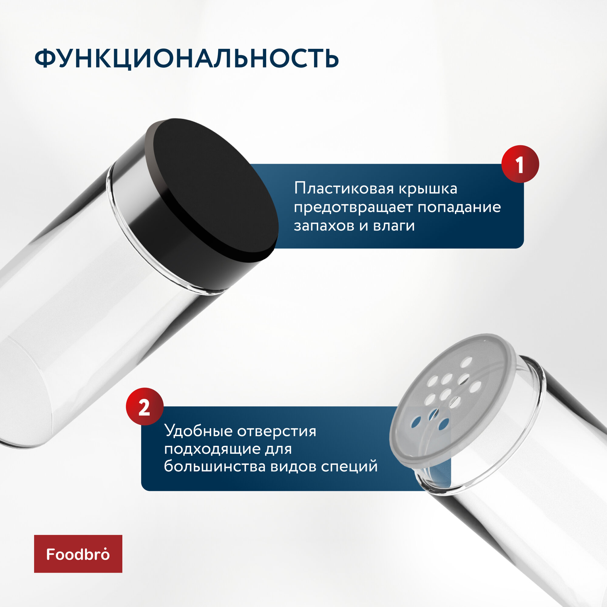 Набор для специй, Солонка, Баночки для сыпучих продуктов,20 шт по 100 мл Foodbro Foodbro (Черный)