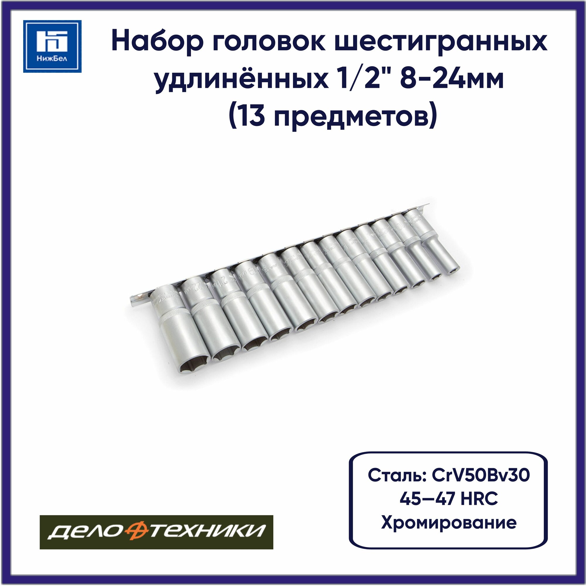 Купить Дело Техники 620313 Набор головок 6-гр. удлинен. 1/2" 13 шт 8,10,12,13,14,15,16,17,18,19,21,22,24 мм