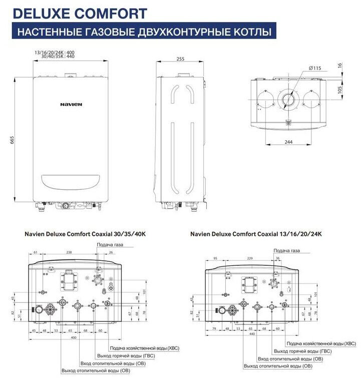 Котел газовый настенный Navien Deluxe Comfort Plus - 35 кВт (двухконтурный, закрытая камера)