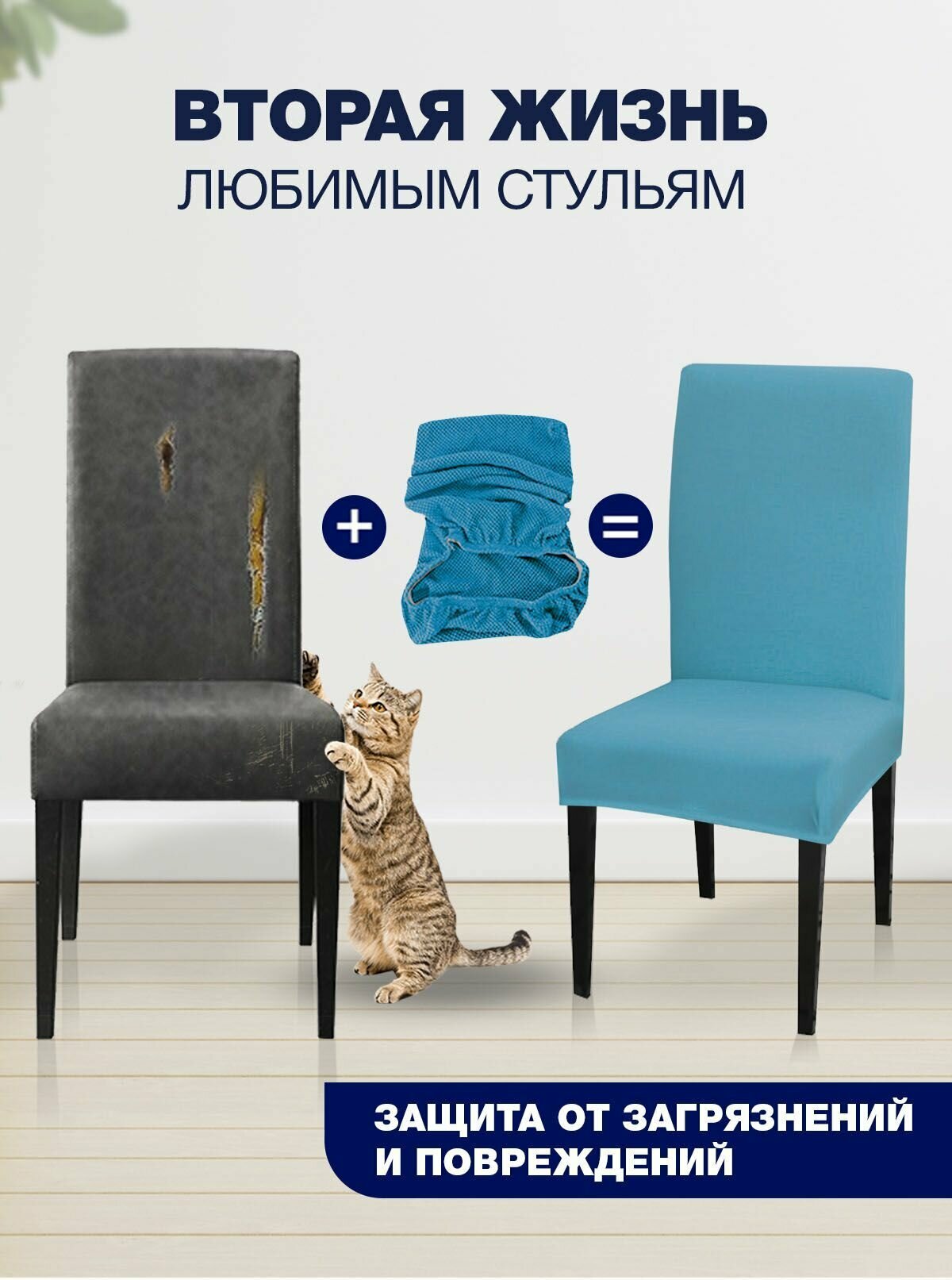 Чехол на стул, чехол для стула со спинкой, Комплект 4 шт, чехлы для мебели, Коллекция "Jersey" Голубой