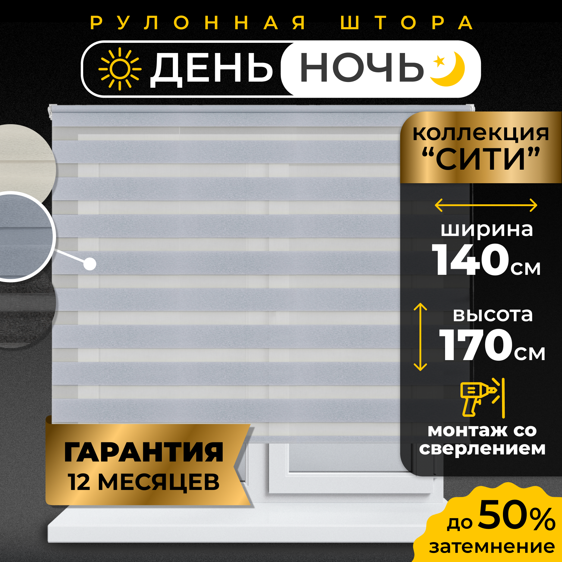 Рулонные шторы LM DECOR "Сити" 02 День/Ночь Светло-серый 140х170 см