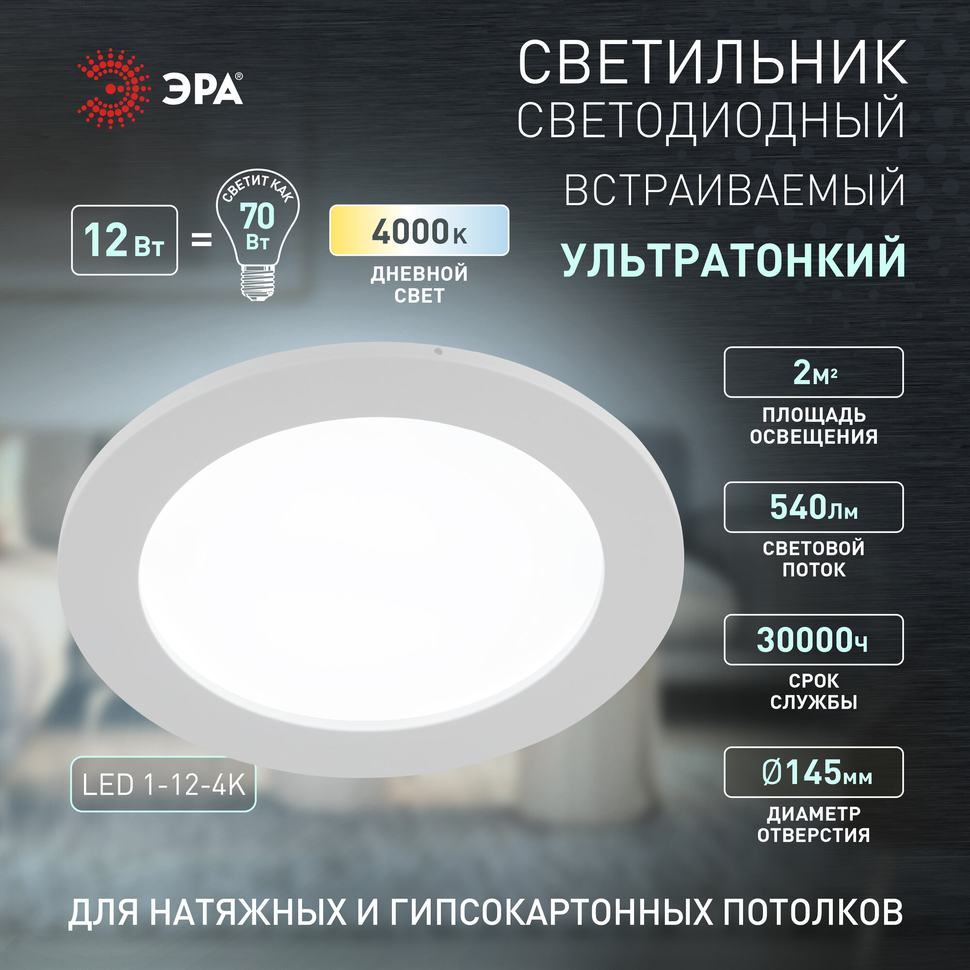 Купить ЭРА LED 1-12-4K Светильник светодиодный круглый LED 12W 220V 4000K Б0017488 .