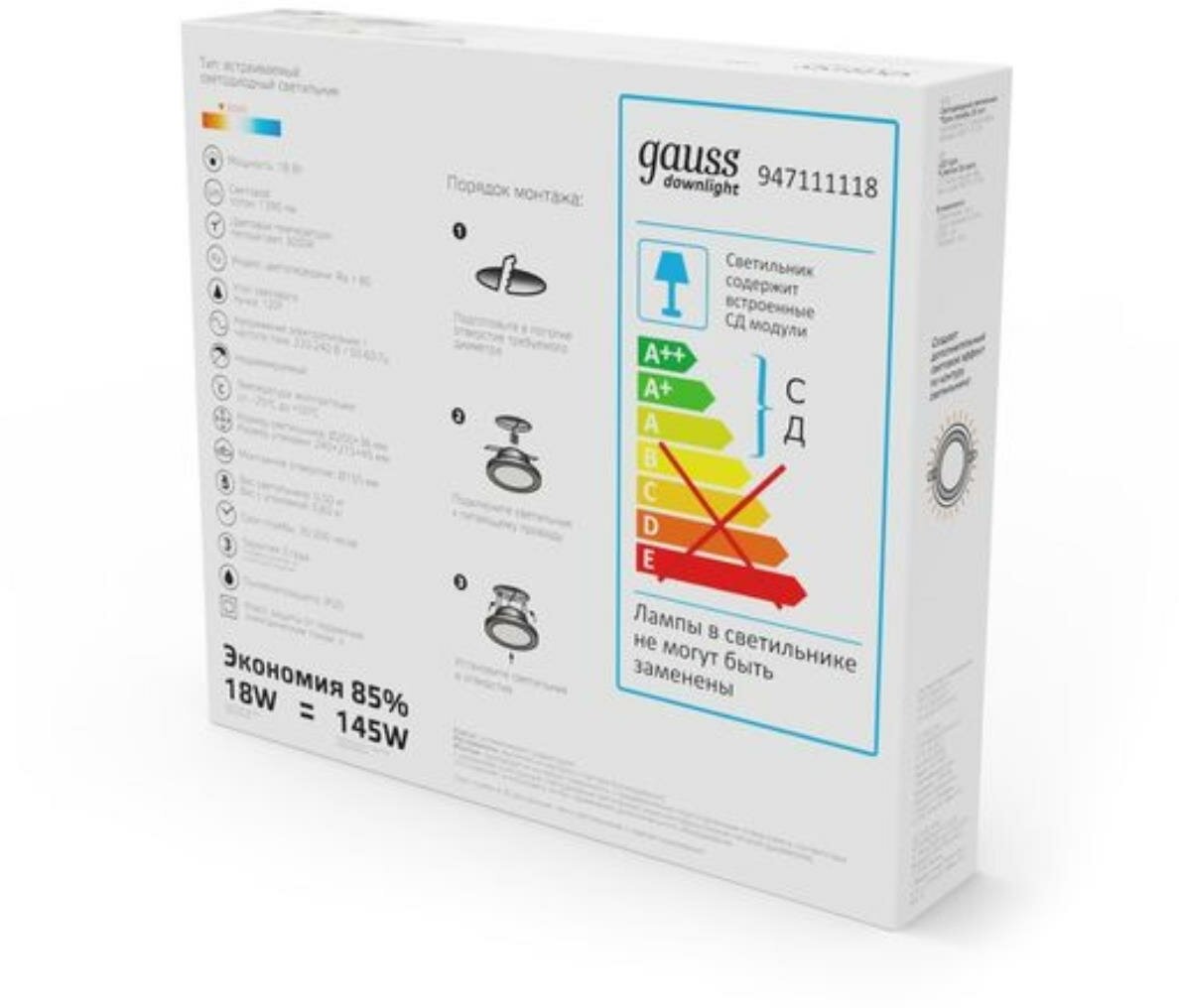| Комплектация | Встраиваемые светильники Gauss 947111118 |