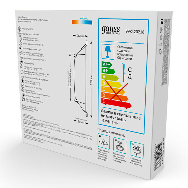 Ниже Вы можете прочитать отзывы на Светильник потолочный встраиваемый Downlight квадр 20W 4000K 220V IP20 170*26 белый Gauss, ознакомится с подробными характеристиками, посмотреть интересные обзоры и фотографии на Светильник потолочный встраиваемый Downlight квадр 20W 4000K 220V IP20 170*26 белый Gauss.