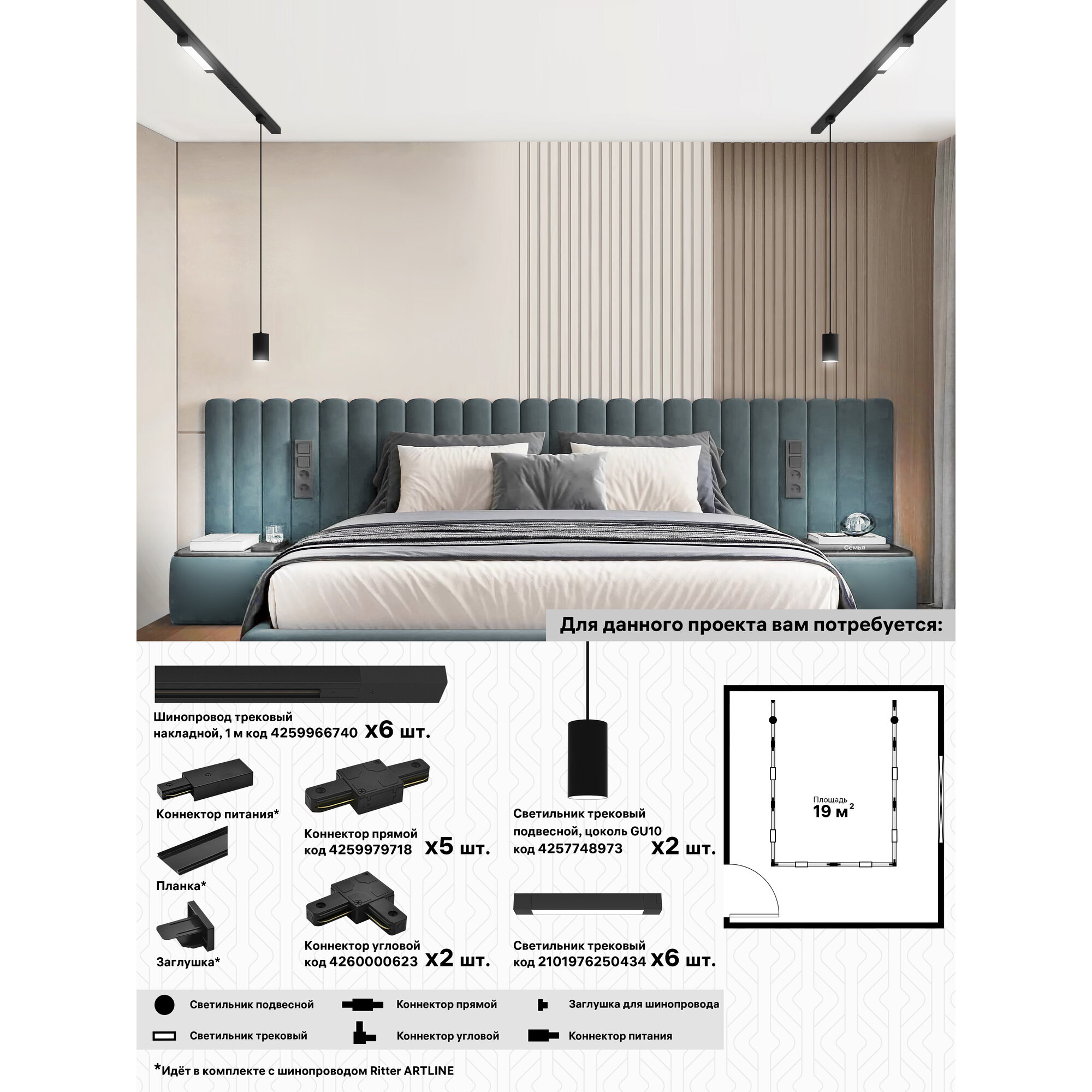 Светильник трековый потолочный поворотный однофазный черный под лампу GU10, до 12Вт, крепление на любой шинопровод 220В, Ritter ARTLINE 59870 5