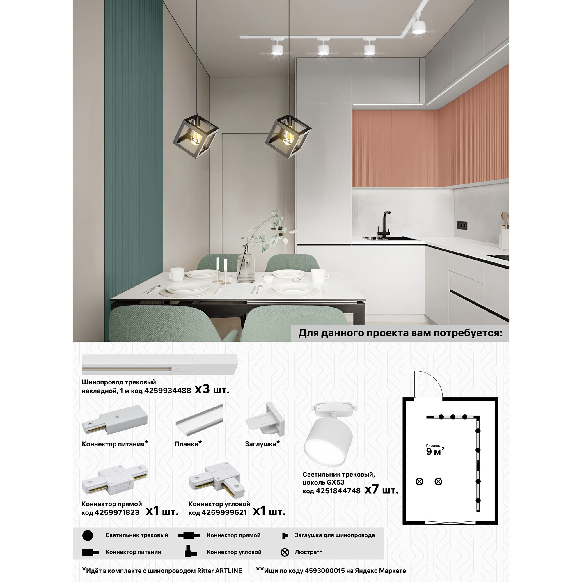 Светильник трековый потолочный поворотный однофазный белый под лампу GX53, до 12Вт, крепление на любой шинопровод 220В, Ritter ARTLINE 59857 6