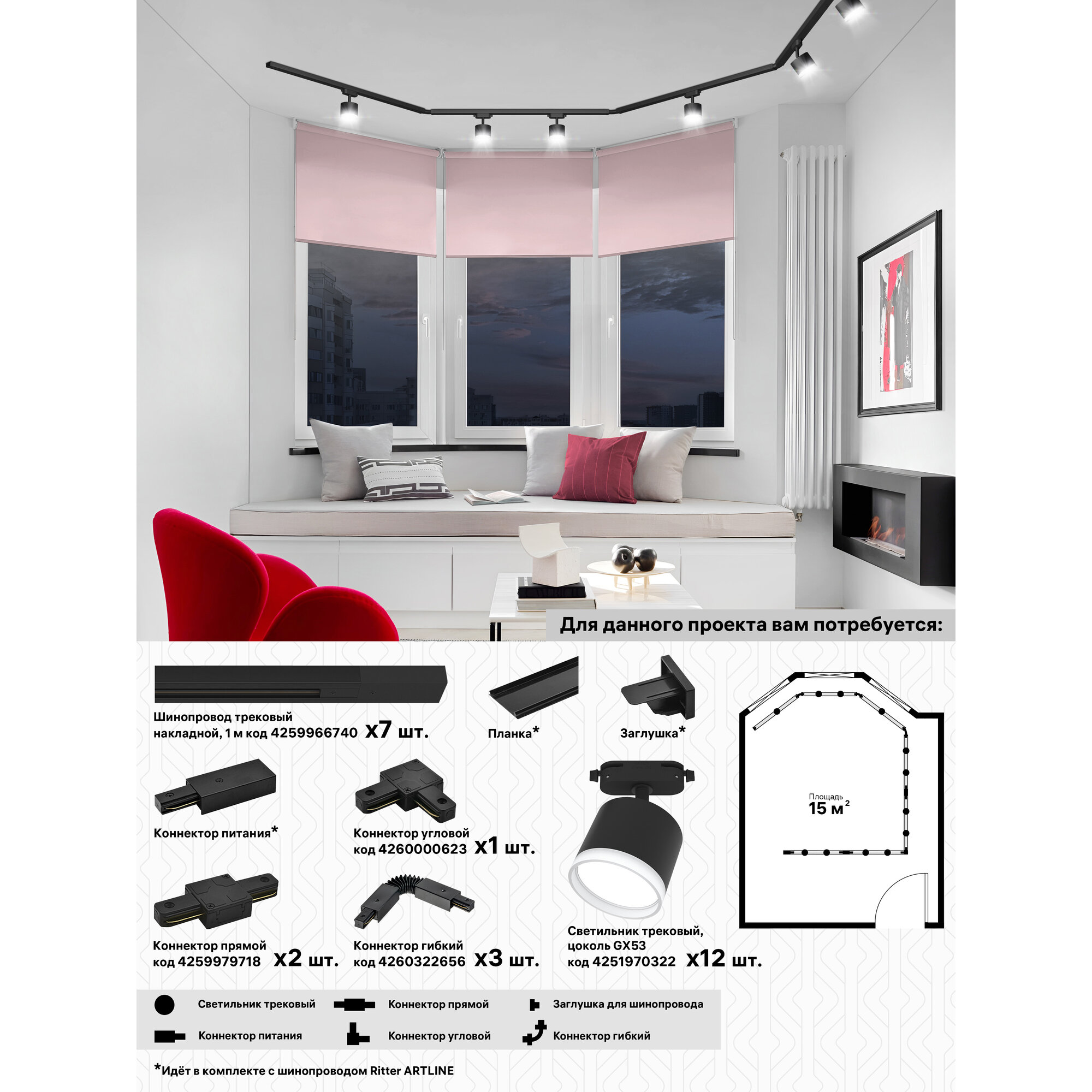 Светильник трековый потолочный поворотный однофазный черный под лампу GX53, до 12Вт, крепление на любой шинопровод 220В, Ritter ARTLINE 59924 5