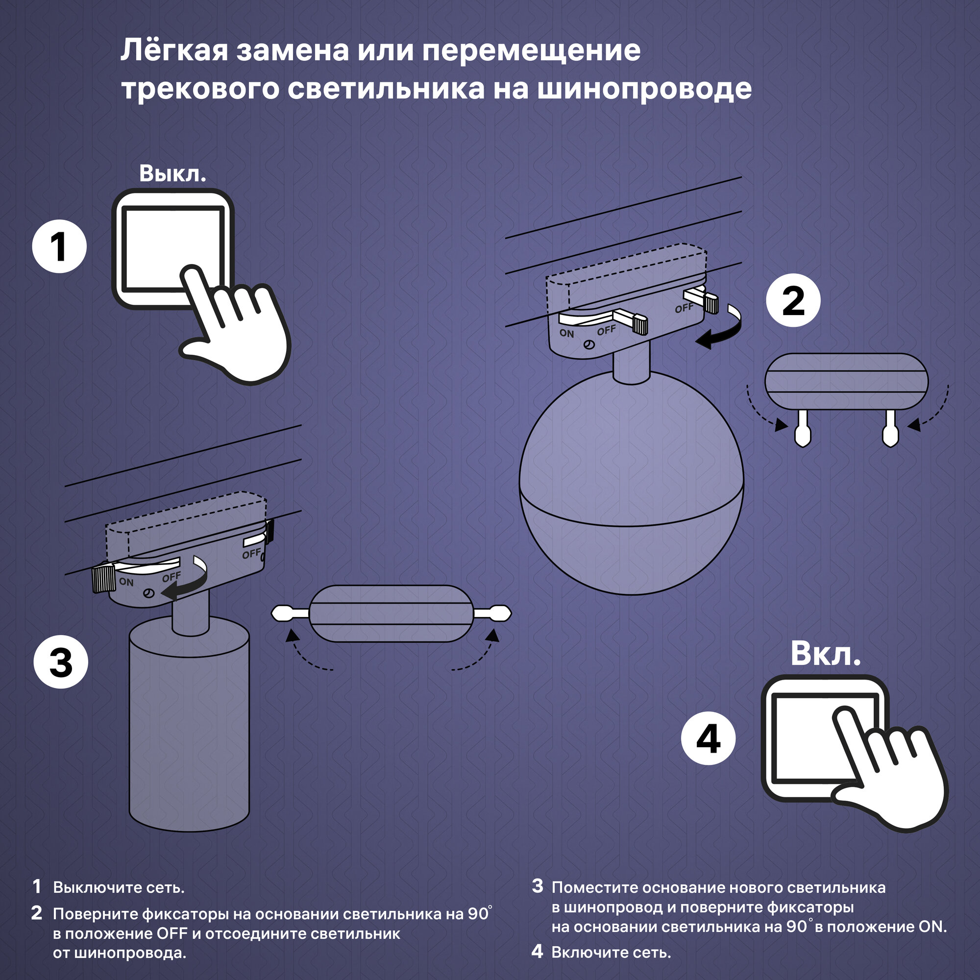 | Подробная комплектация | Трековый светильник, инструкция на русском языке, плотная картонная коробка. |