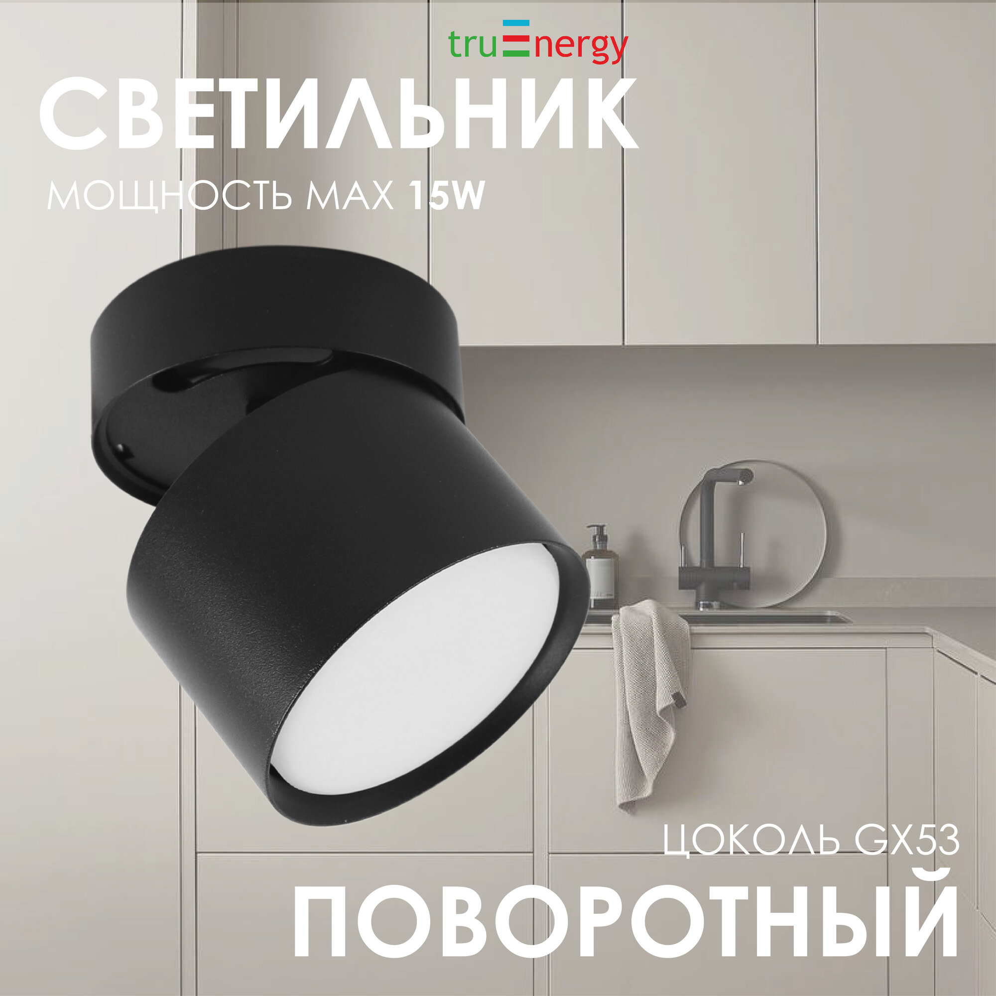 truEnergy Накладной поворотный светильник GX53 D82xH80мм IP20 черный/алюминий 21006 интересное: