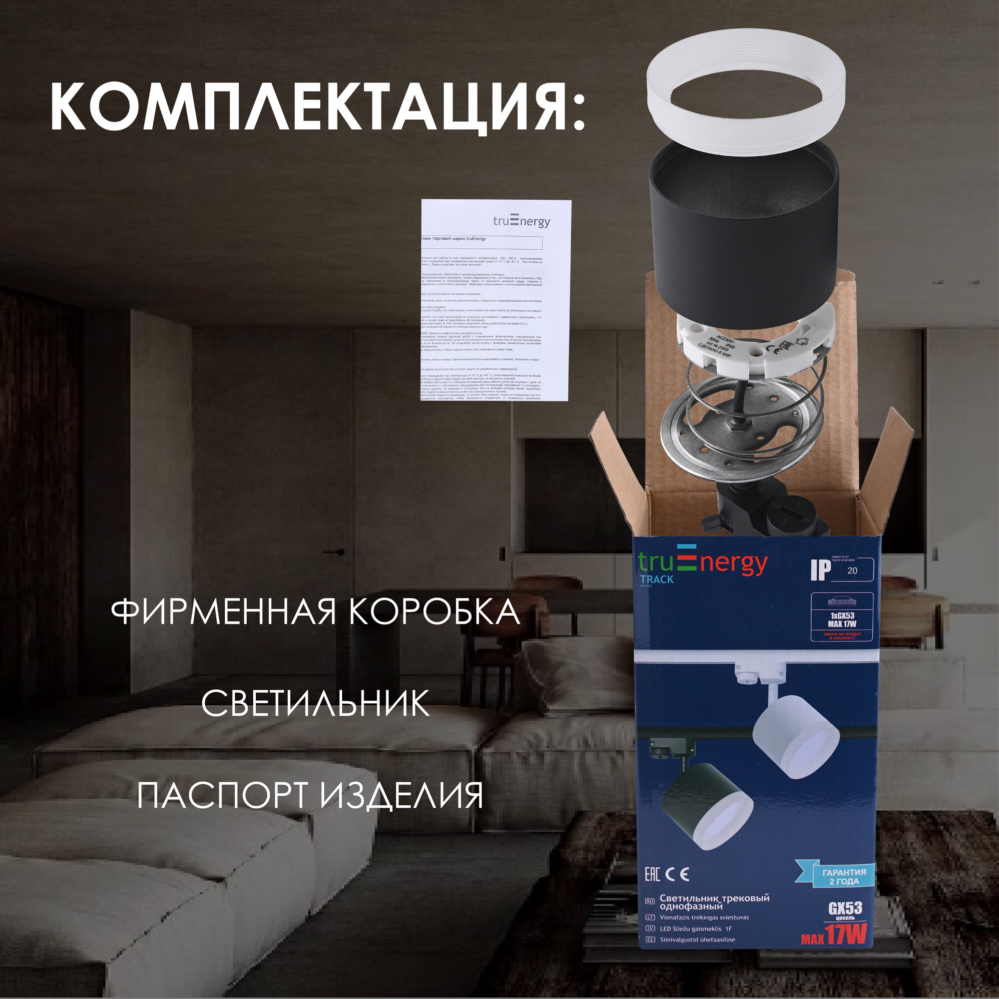 Трековый светильник потолочный TruEnergy под лампу GX53, 1 лампа, 1 плафон, 17 Вт, 230В интересное: