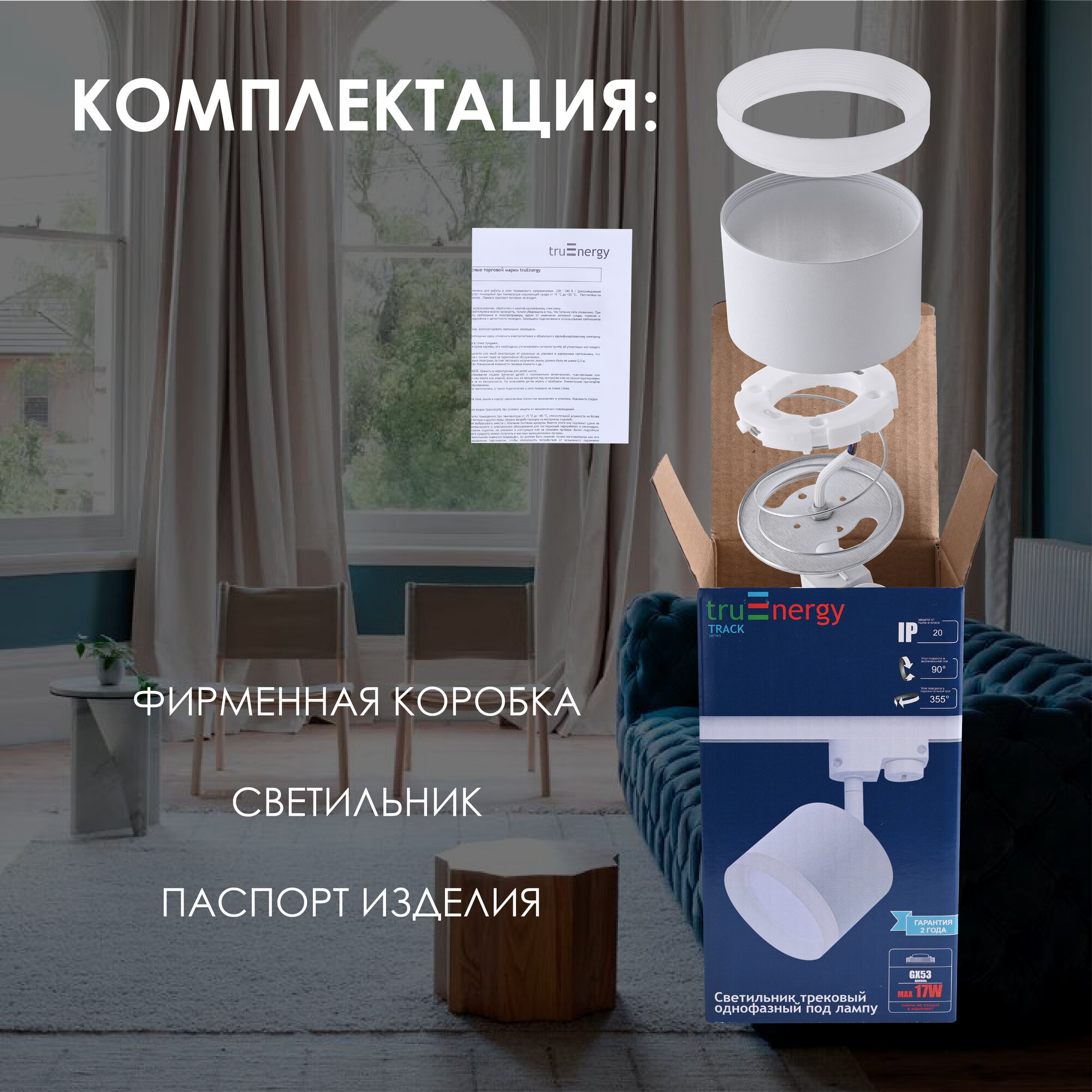 Трековый светильник потолочный TruEnergy под лампу GX53, 1 лампа, 1 плафон, 17 Вт, 230В