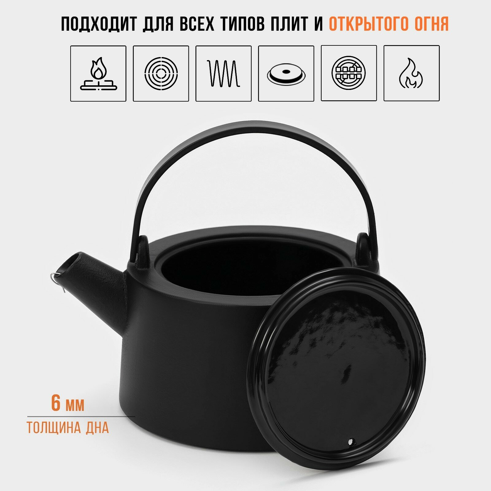 Чайник для плиты с эмалированным покрытием внутри Magma «Сайгон», 1,1 л, чугун, с ситом, индукция, цвет чёрный